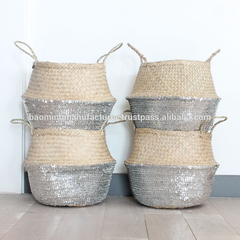 Seagrass Belly ตะกร้าด้านล่างเงินเลื่อมจากเวียดนาม