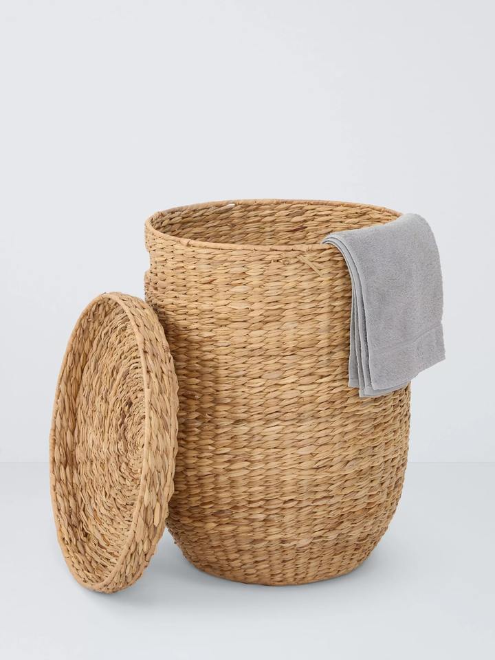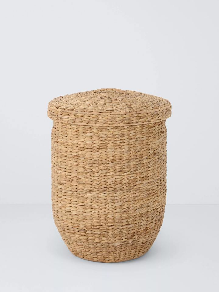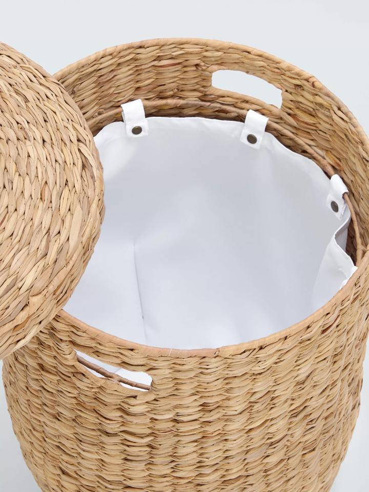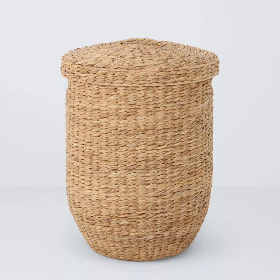 ตะกร้าใส่ผ้าทรงกลมจากหญ้าทะเล ธรรมชาติ