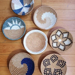 ตะกร้าสานติดผนังสไตล์โบโฮทำจากหญ้าทะเล,แผ่นตกแต่งงานหัตถกรรม TienPhong ทำในเวียดนาม
