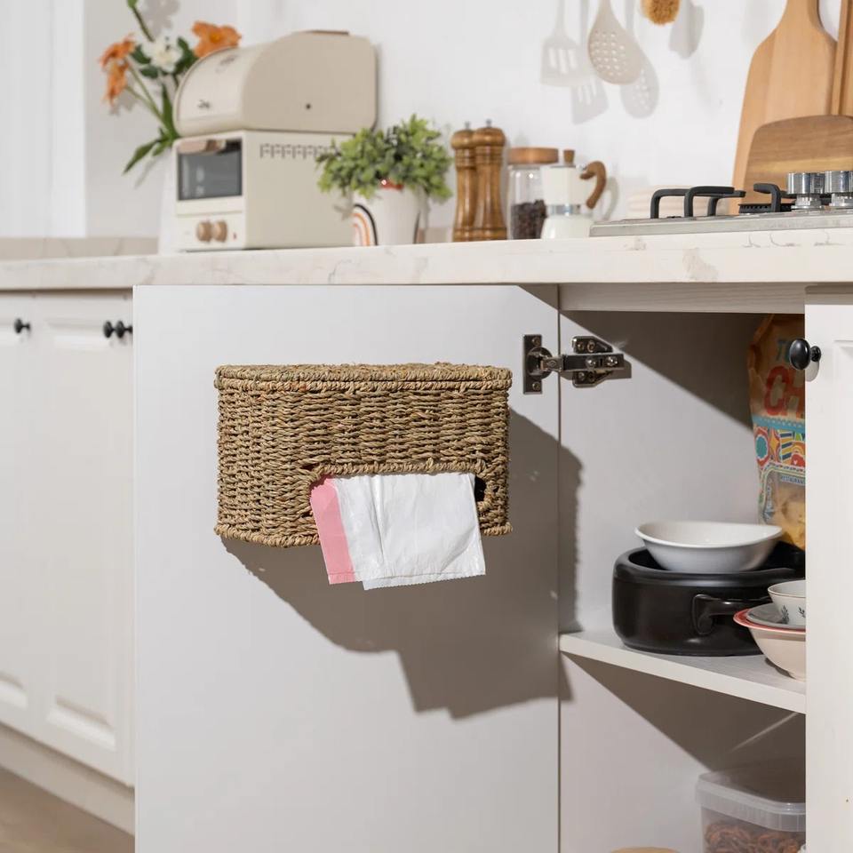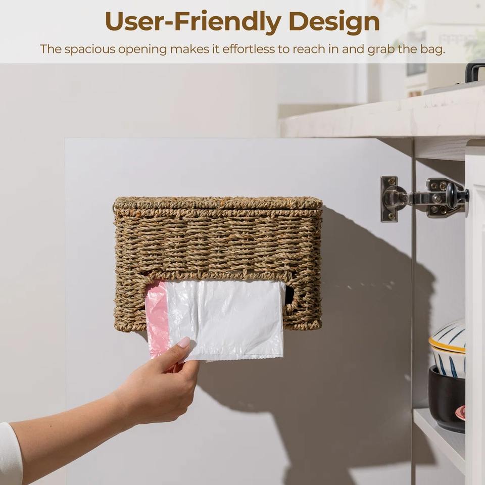 ชื่อ:ที่ใส่ถุงขยะฝาปิดหญ้าทะเล ขนาด: L10.5 x W6.5 x H10.5 นิ้ว