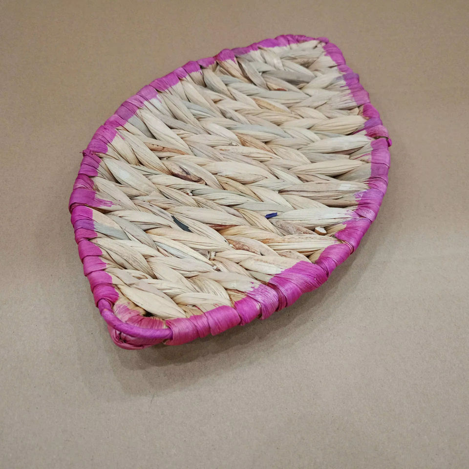 ถาดเสิร์ฟอาหารผลไม้ขนมปังจากหญ้าทะเล พร้อมหูจับตกแต่ง สำหรับใช้ในบ้าน โรงแรม ร้านอาหาร งานศิลปะ VGreen