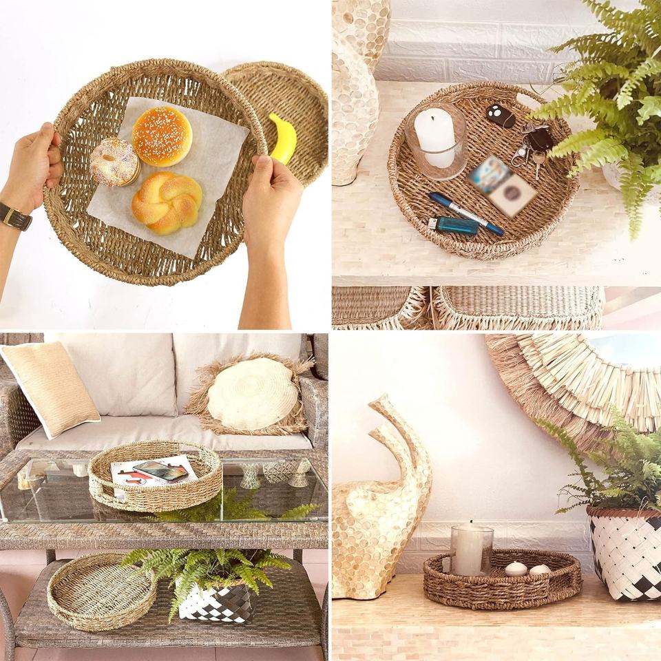 Woven Seagrass Serving Trays with HandlesProduct Name