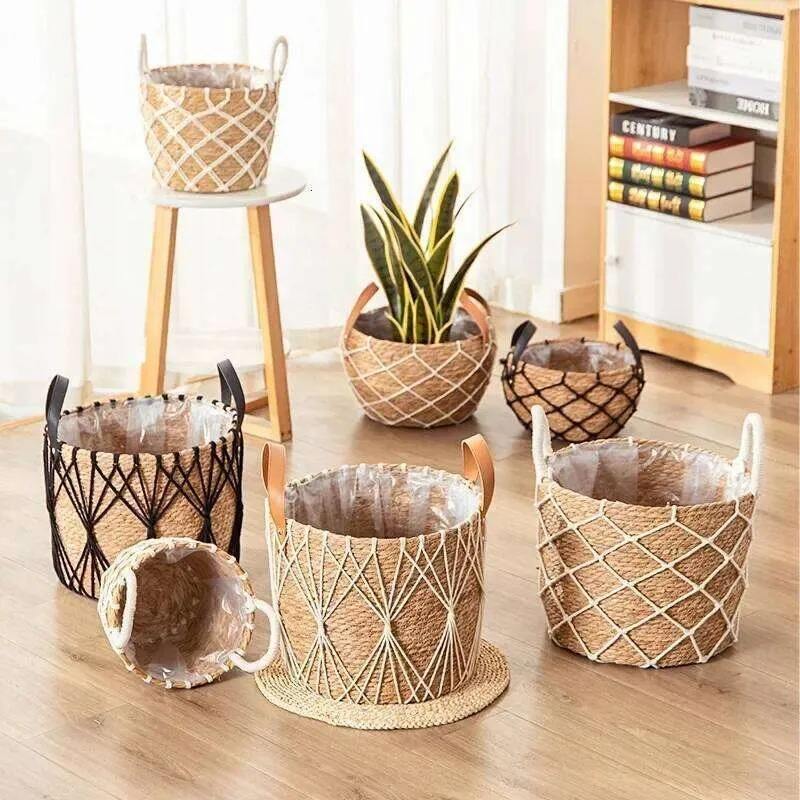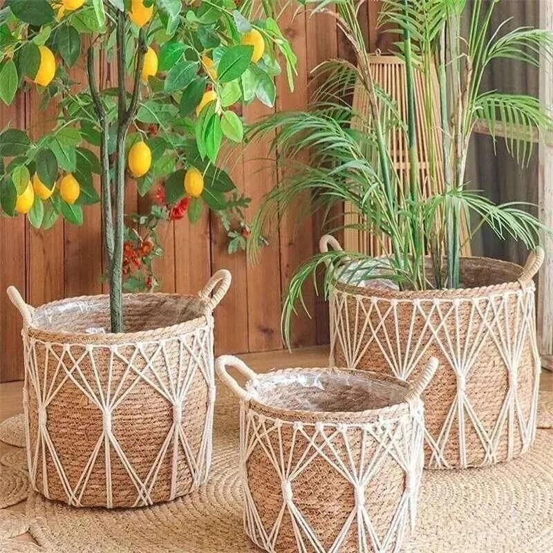 ตะกร้าเก็บของจากหญ้าทะเล ของตกแต่งบ้านและสวน ตะกร้าเก็บของทำมือ ขายส่ง เป็นมิตรกับสิ่งแวดล้อม ผลิตในเวียดนาม
