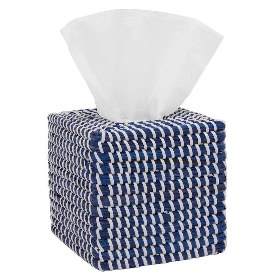 Seagrass Tissue Box Navy and White:Size: W5,5 x H6 inch
