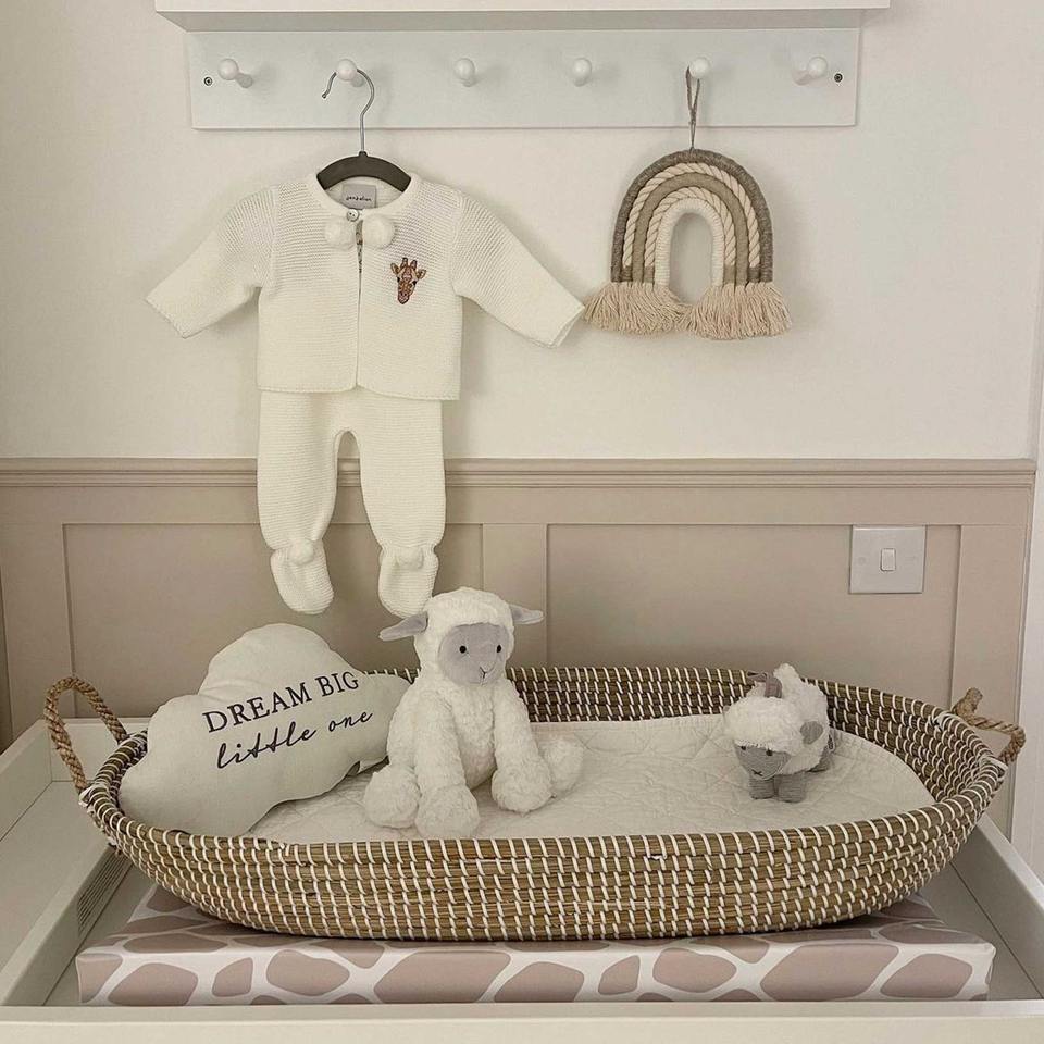 ตะกร้าสำหรับเปลี่ยนของสำหรับทารกหญ้าทะเลมีแผ่นรองนอนที่นุ่มสบายตะกร้าฟางธรรมชาติ