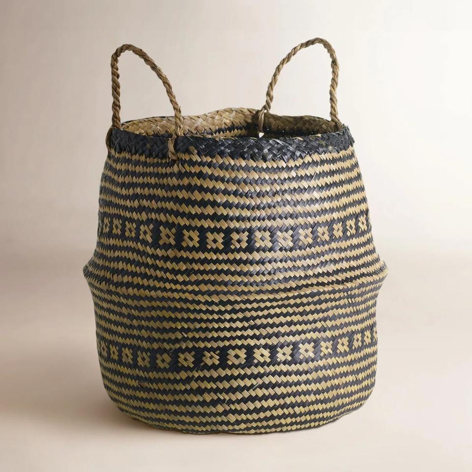 ตะกร้าหญ้าทะเลลายผสมผสาน ตะกร้าเก็บของทำมือ ขายส่ง เป็นมิตรกับสิ่งแวดล้อม ผลิตในเวียดนาม