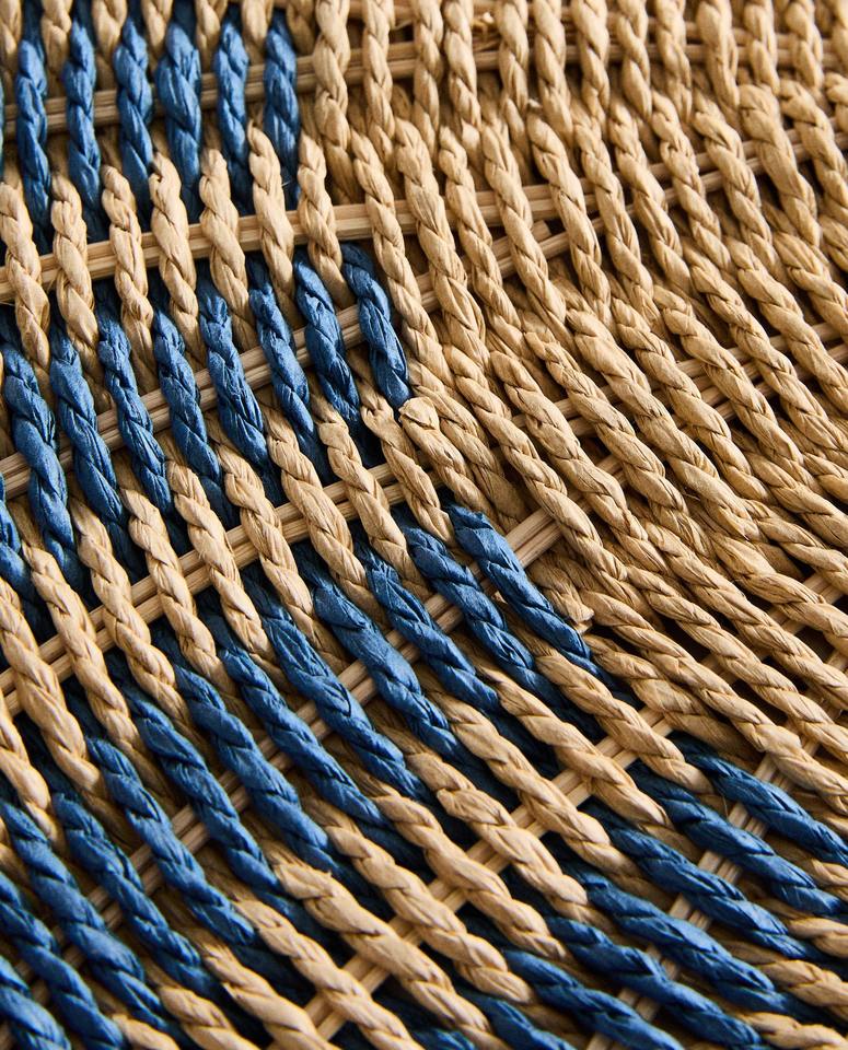 แผ่นรองแก้วหญ้าทะเลทรงกลมมีขอบสีฟ้าเป็นมิตรต่อสิ่งแวดล้อมสินค้าทำจากแผ่นรองจานของตกแต่งโต๊ะในเวียดนามขายส่ง