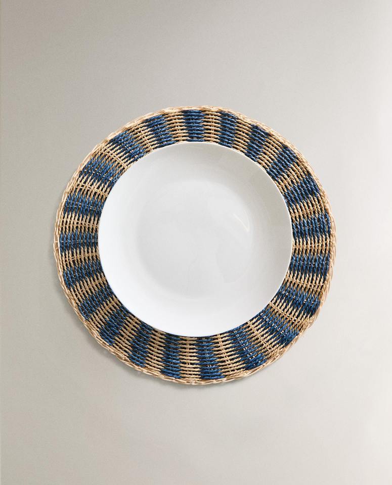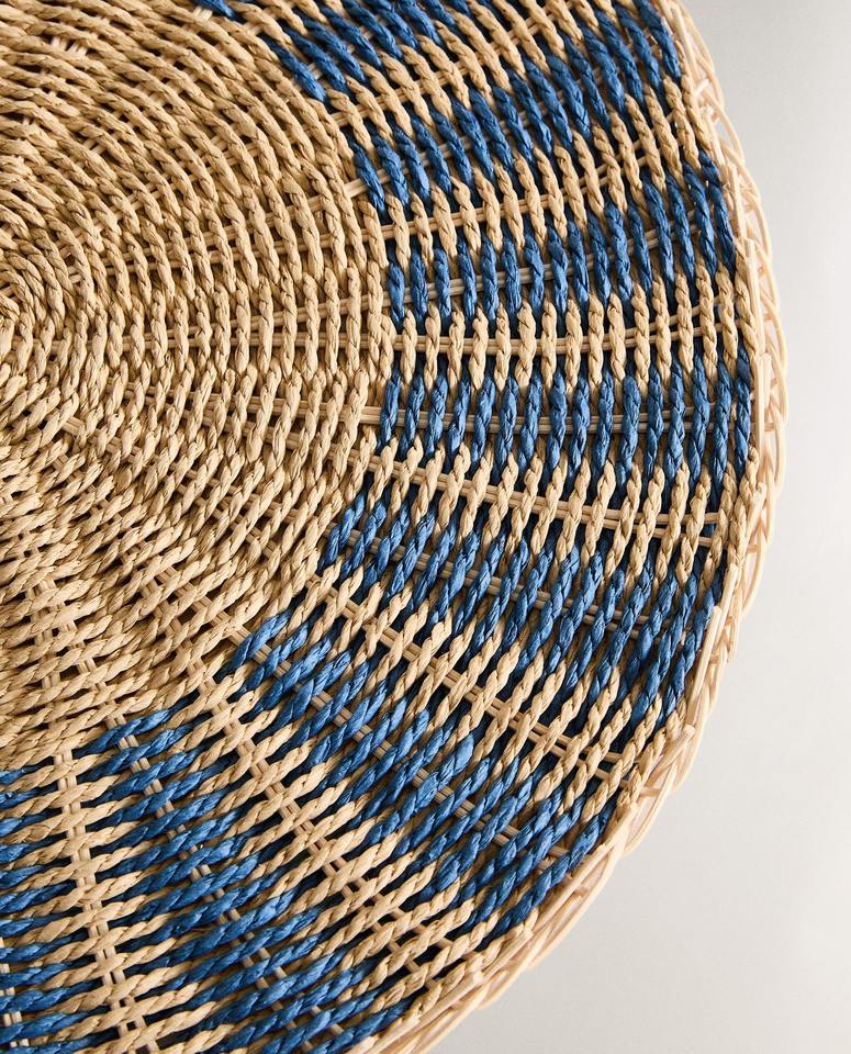 ชื่อผลิตภัณฑ์:แผ่นรองแก้วหญ้าทะเลทรงกลมขอบสีน้ำเงิน
