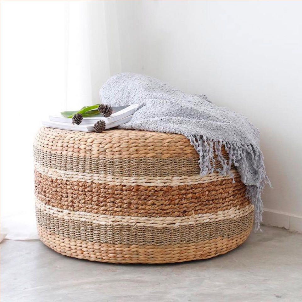 เก้าอี้สตูลจากหญ้าทะเลแบบถักด้วยมือเก้าอี้ผ้าขี้ริ้วสำหรับคาเฟ่สปาโรงแรมรีสอร์ท