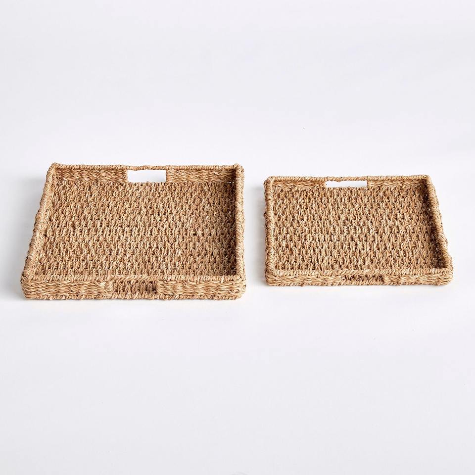 Seagrass trays for bakery coffee shop serving decoration woven sea grass organizer tray high quality