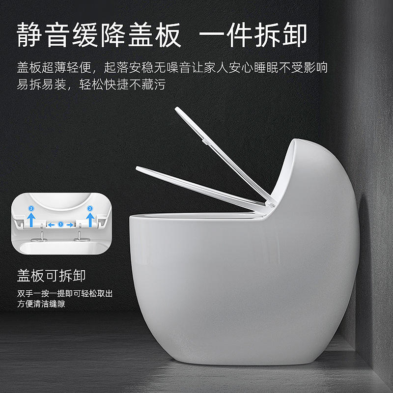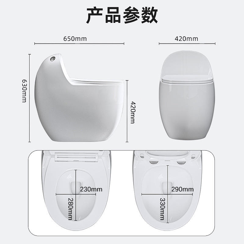 โถสุขภัณฑ์ทรงไข่แบบนกนางนวล รับน้ำหนักได้ 400 กก. ระบบไซฟอน 5 ลิตร เป็นมิตรกับสิ่งแวดล้อม ติดตั้งบนพื้น ผลิตที่เฉาโจว