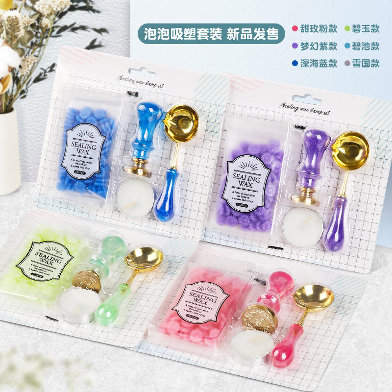 ชุดตราประทับขี้ผึ้งพร้อมด้ามจับ ช้อน และเม็ดขี้ผึ้ง สำหรับงานแต่งงาน งานศิลปะ และการทำเทียน
