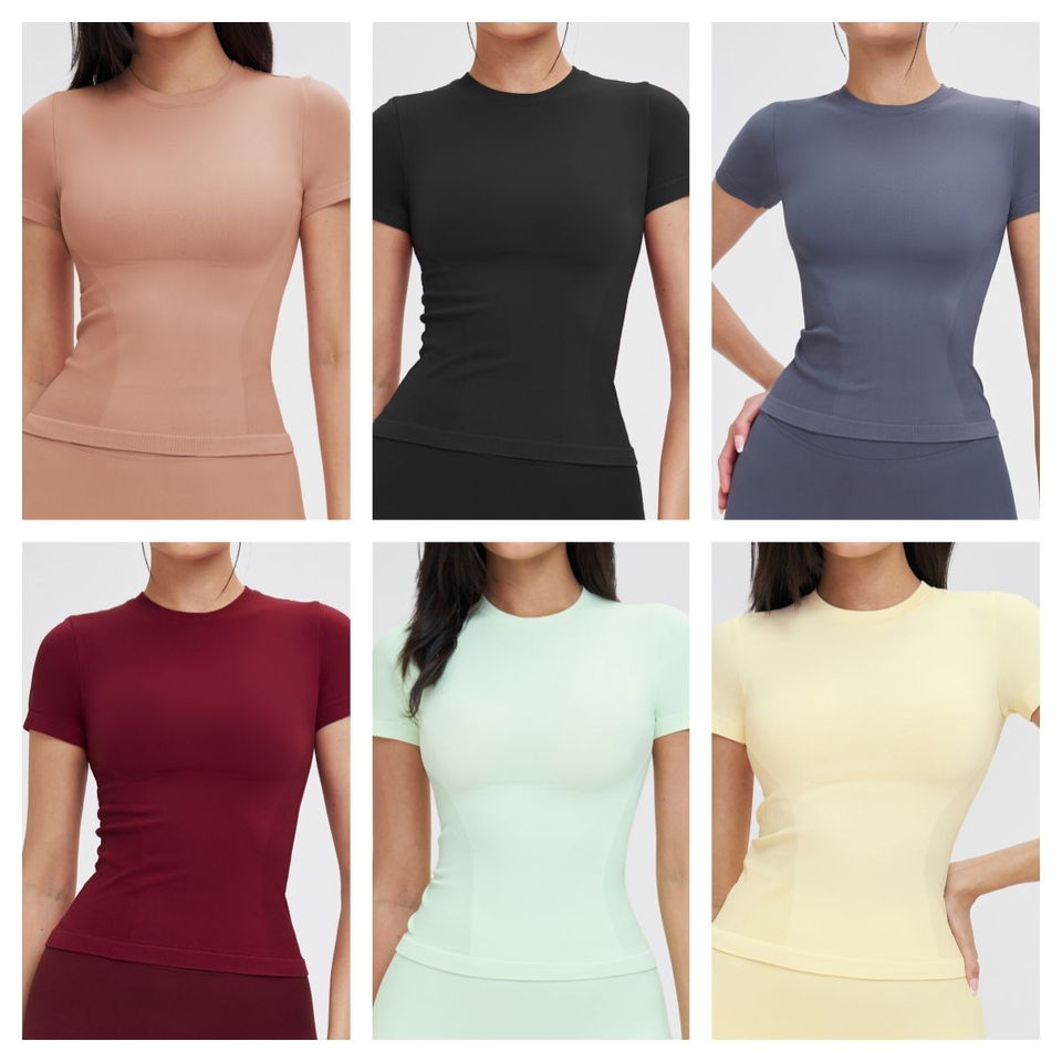 เสื้อยืดแขนสั้นโยคะฤดูร้อนคุณภาพสูงไร้รอยต่อ เสื้อเจอร์ซีย์น่ารักสำหรับทุกเพศ สวมใส่สบาย เหมาะสำหรับเล่นกีฬา ทรงปกติ เหมาะสำหรับวิ่งกลางแจ้ง