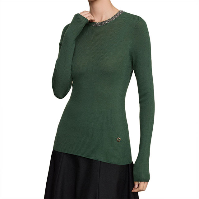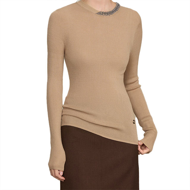 เสื้อสเวตเตอร์ถักไหมพรมเนื้อละเอียดไร้รอยต่อสำหรับผู้หญิง ดีไซน์คอกลม ประดับลูกปัดงานหนัก