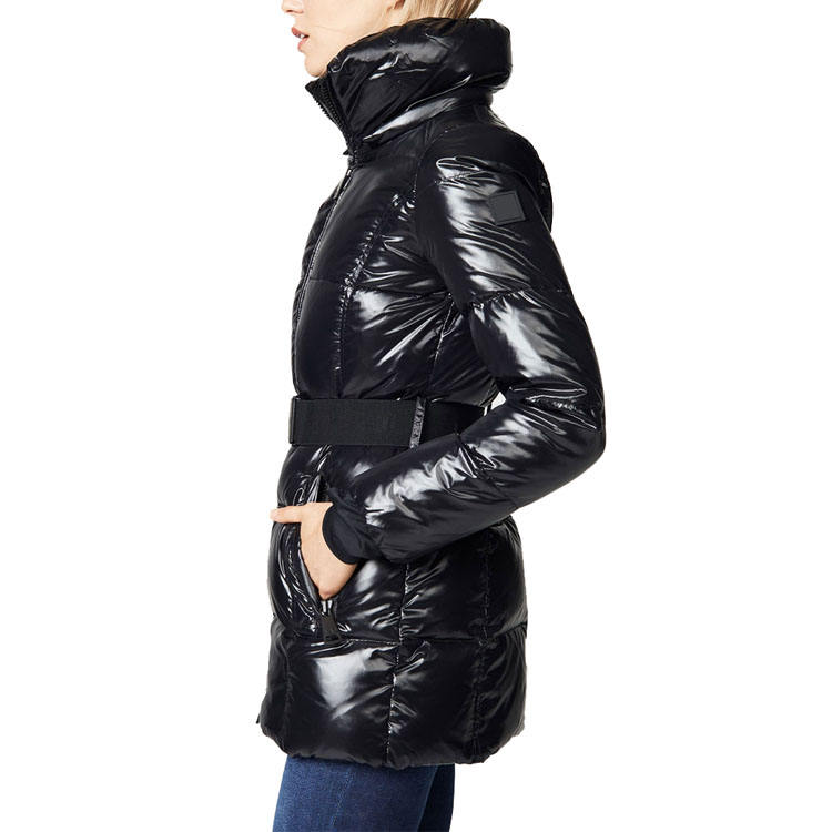 เสื้อแจ็คเก็ตพัฟเฟอร์เย็บด้วยเครื่องจักรไร้รอยต่อสำหรับผู้หญิง ขายดีที่สุด มาพร้อมเข็มขัดปรับเอวได้ เสื้อแจ็คเก็ตบุนวมเย็บลายตารางสำหรับผู้หญิง