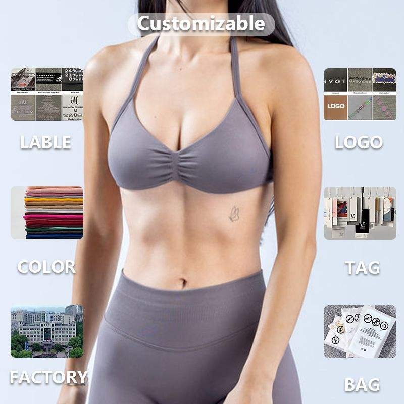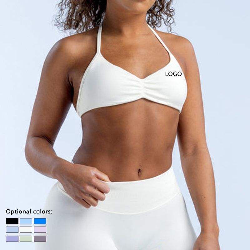 บราเล่นกีฬาเว้าหลังคอเสื้อไร้ตะเข็บระบายอากาศได้บราเล่นฟิตเนสเล่นโยคะสำหรับผู้หญิง