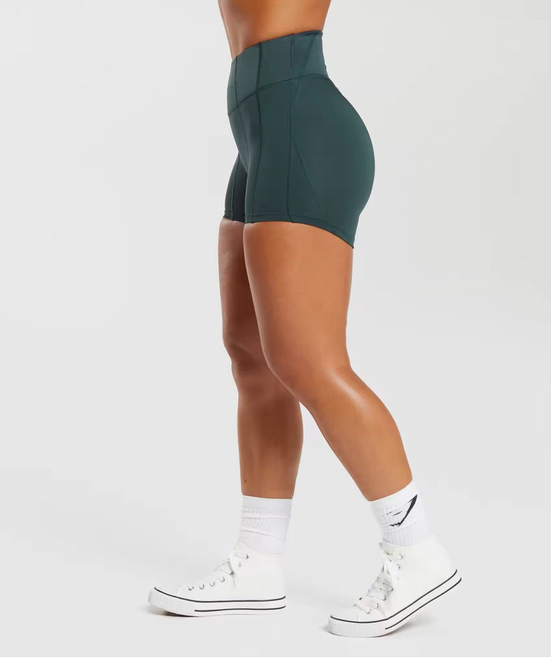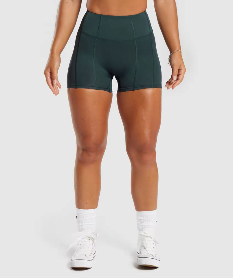 กางเกงขาสั้นผู้หญิงแบบเรียบสีพื้น ยืดหยุ่น ระบายอากาศ ยกสะโพก กางเกงออกกำลังกาย ล้างสีแบบแอซิดวอช สำหรับวิ่งและเล่นกีฬา