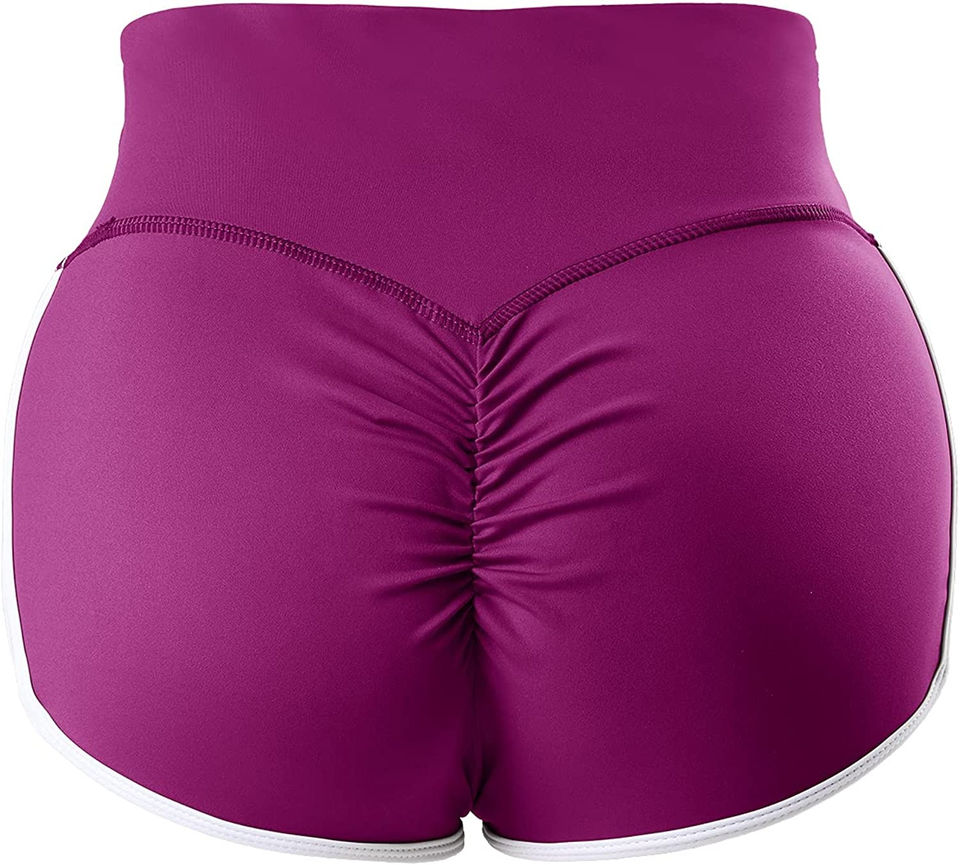 กางเกงขาสั้นผู้หญิงแบบเรียบสีพื้น ยืดหยุ่น ระบายอากาศ ยกสะโพก กางเกงออกกำลังกาย ล้างสีแบบแอซิดวอช สำหรับวิ่งและเล่นกีฬา