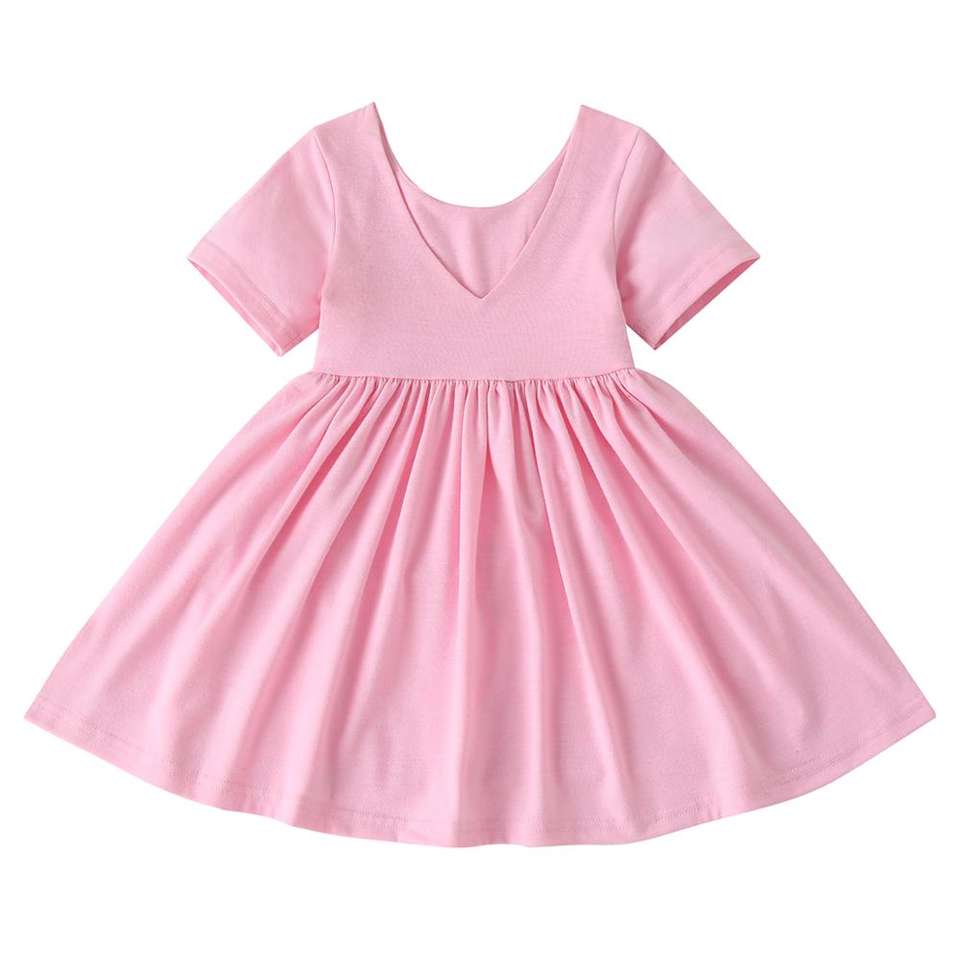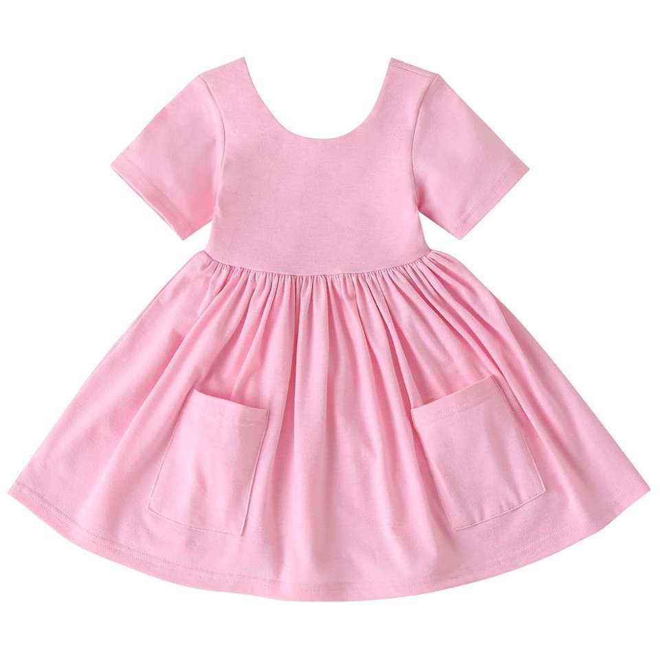 ชุดเดรสเด็กผู้หญิงคอกลมไร้รอยต่อ มีกระเป๋าหน้า แต่งโบว์ สำหรับฤดูร้อน