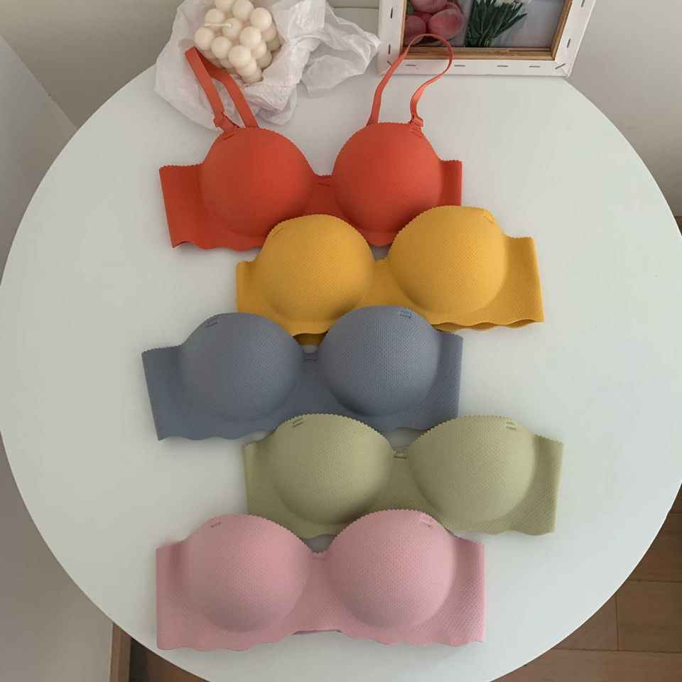 ชุดชั้นในผู้หญิงไร้ตะเข็บ บราและกางเกงในแบบจับจีบเนื้อผ้านุ่มสบาย ชุดชั้นในสีพื้น เซตชุดชั้นในสุดเซ็กซี่