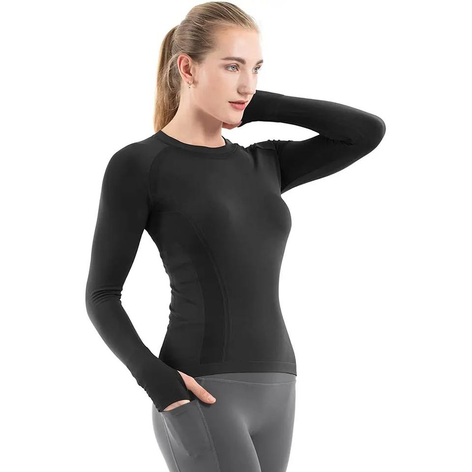 เสื้อออกกำลังกายไร้ตะเข็บสำหรับผู้หญิงเสื้อวิ่งเล่นโยคะแขนยาวเสื้อกีฬาเสื้อออกกำลังกายระบายอากาศได้ดีเสื้อรัดรูปเข้ารูปเข้ายิม