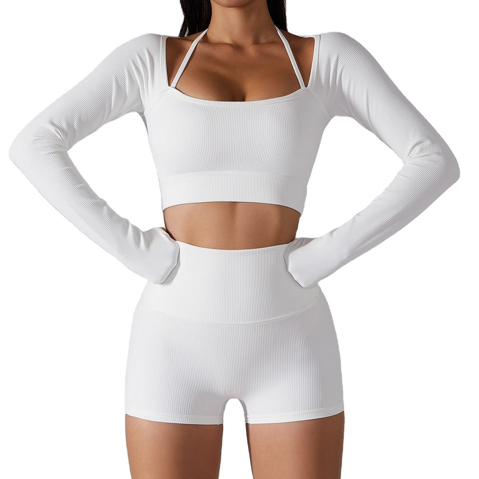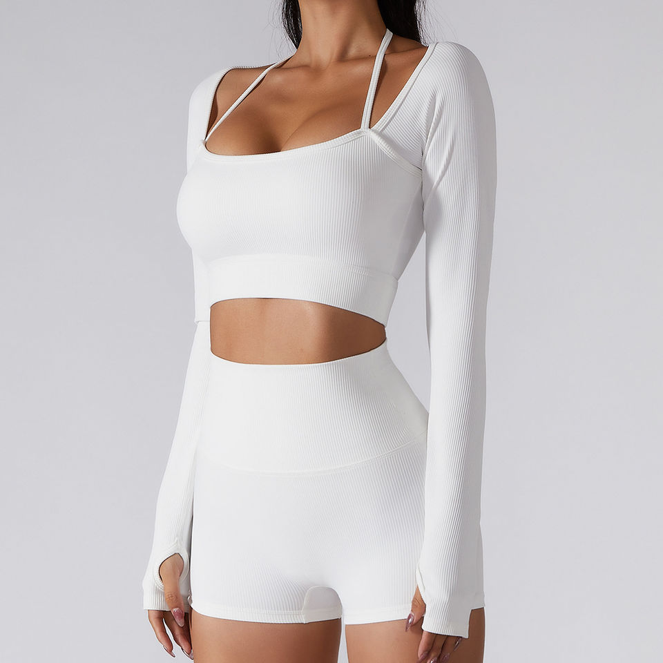 ชุดเล่นโยคะไร้ตะเข็บชุดกีฬาชุดออกกำลังกายเล่นฟิตเนสผู้หญิงแขนยาวเลกกิ้งเอวสูง