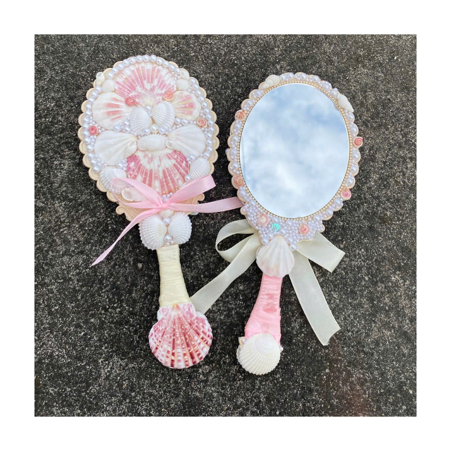 เปลือกหอยกระจกขนาดกะทัดรัดประดับด้วยเปลือกหอยธรรมชาติและของขวัญจากช่างฝีมือไข่มุกสำหรับมหาสมุทรและธรรมชาติ