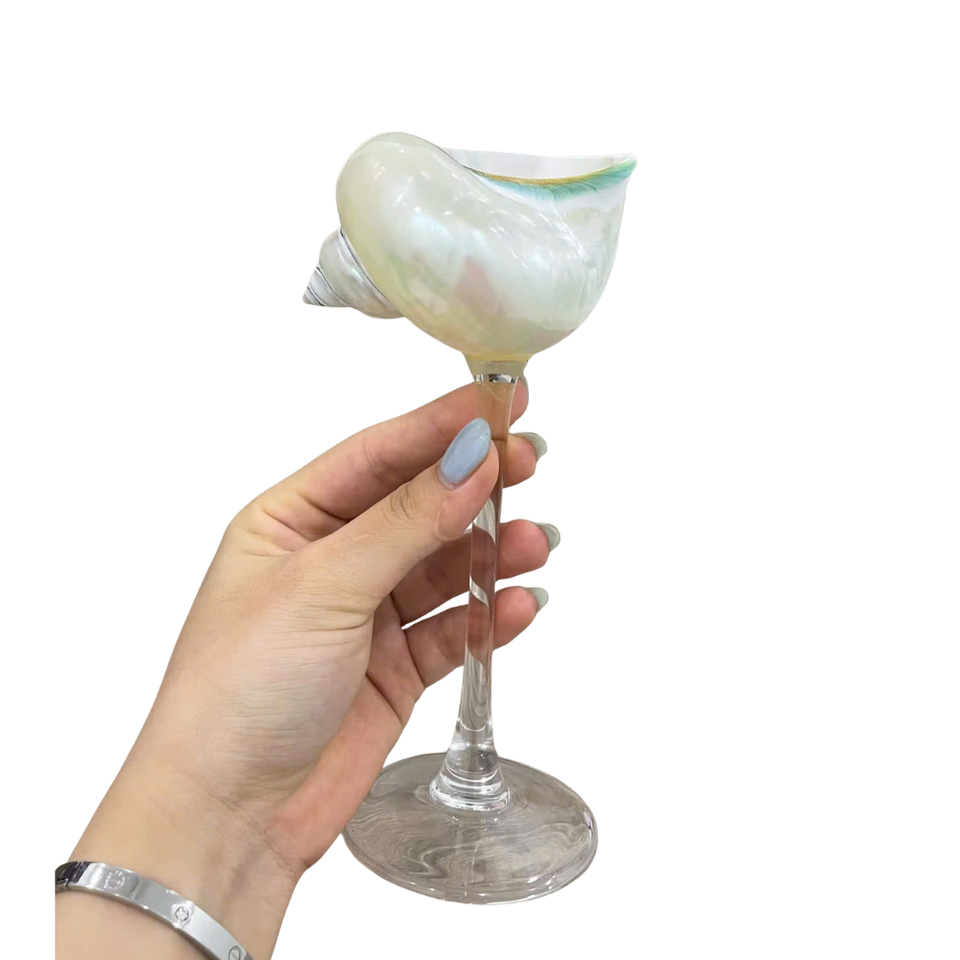 แก้วเปลือกหอยถ้วยไวน์เปลือกหอยเปลือกหอยหอยทากธรรมชาติทำด้วยมือไม่เหมือนใครสำหรับการจัดแสดงบนโต๊ะหรืองานเลี้ยงบรรยากาศชายหาด