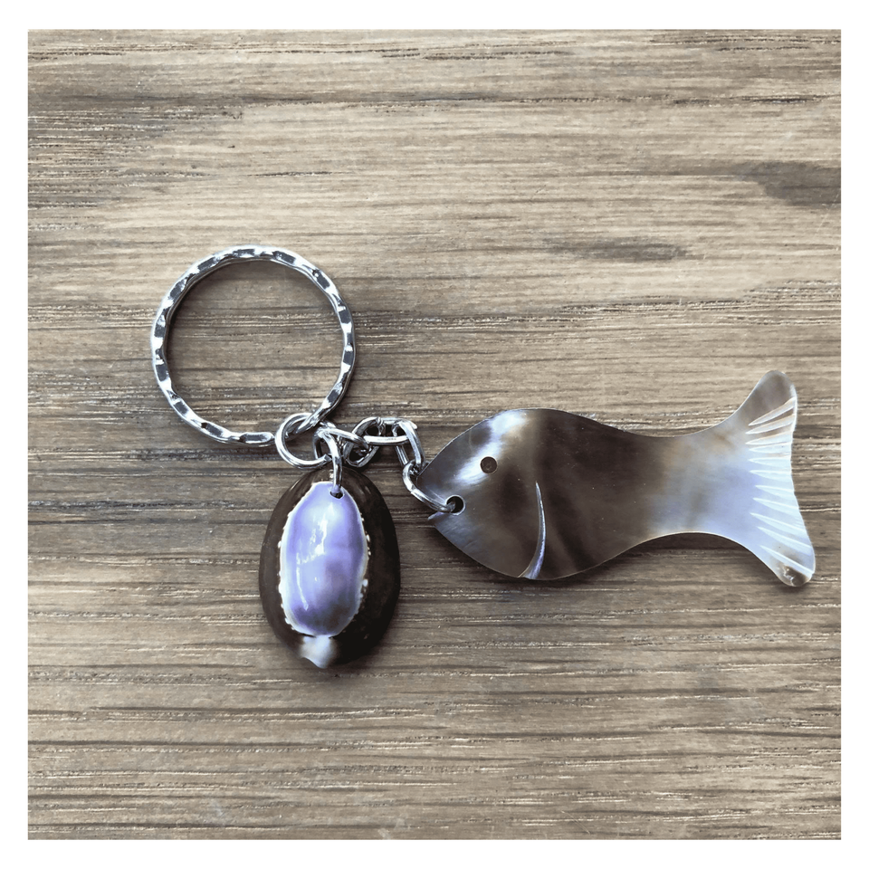 พวงกุญแจเปลือกหอย วัสดุเปลือกหอยขัดเงาธรรมชาติ ผลิตสำหรับเป็นของที่ระลึกและใช้เป็นที่แขวนกุญแจ ผลิตในเวียดนาม