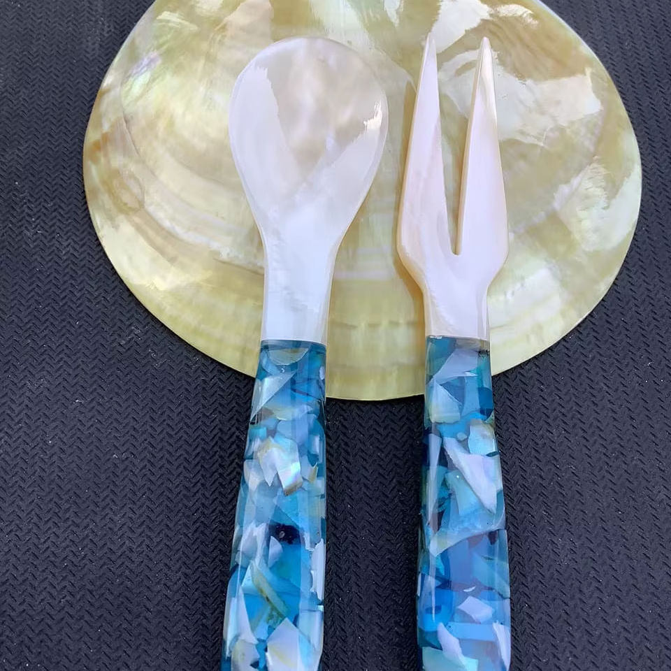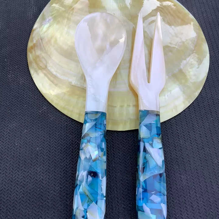 ช้อนเปลือกหอยทำด้วยมือจากเปลือกธรรมชาติที่แวววาวสำหรับการนำเสนออาหารที่หรูหราซึ่งสร้างขึ้นในเวียดนาม