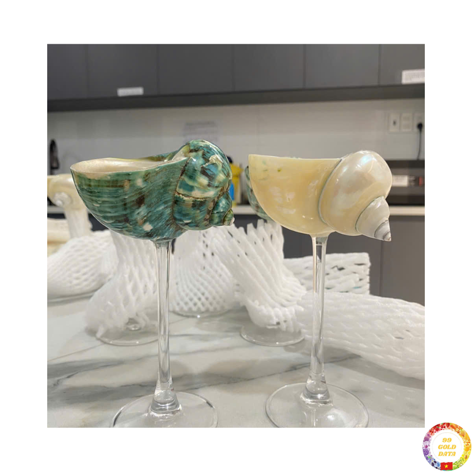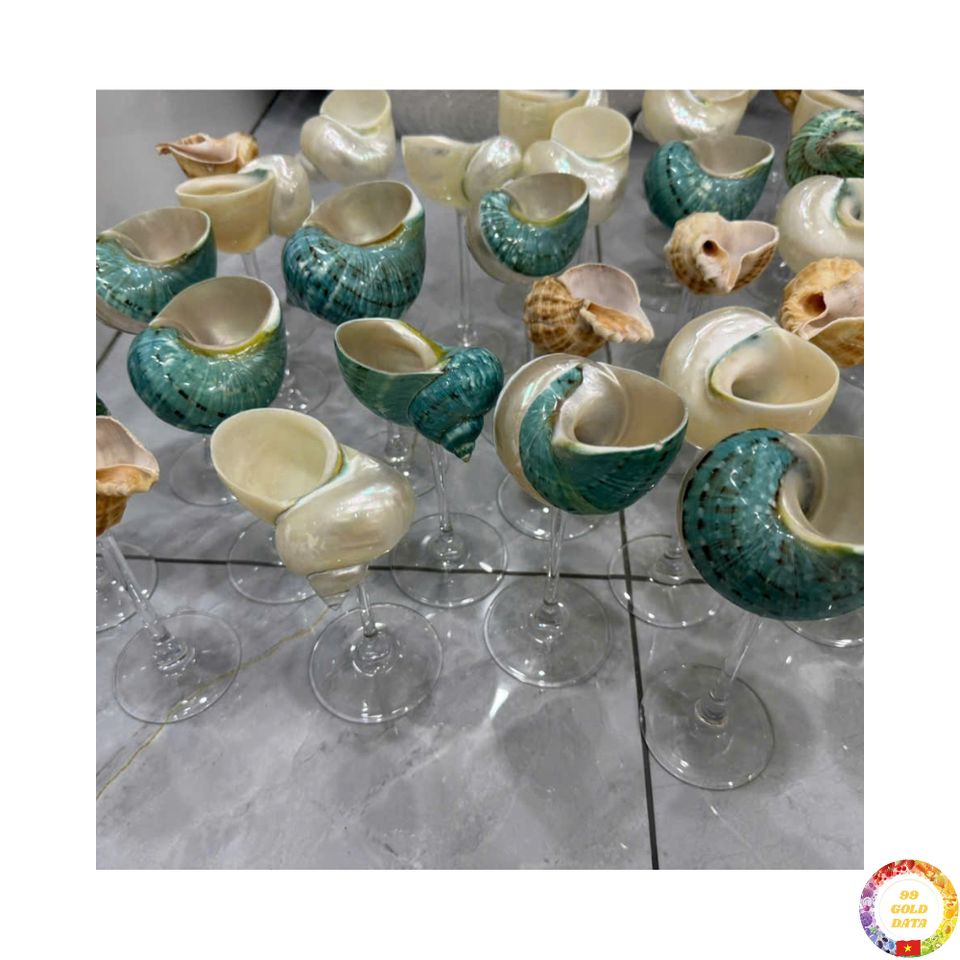 เปลือกหอยแก้วไวน์เปลือกหอยเปลือกหอยธรรมชาติพร้อมก้านแก้วสำหรับตกแต่งบาร์ค็อกเทลปาร์ตี้แฮนด์เมดจากเวียดนาม