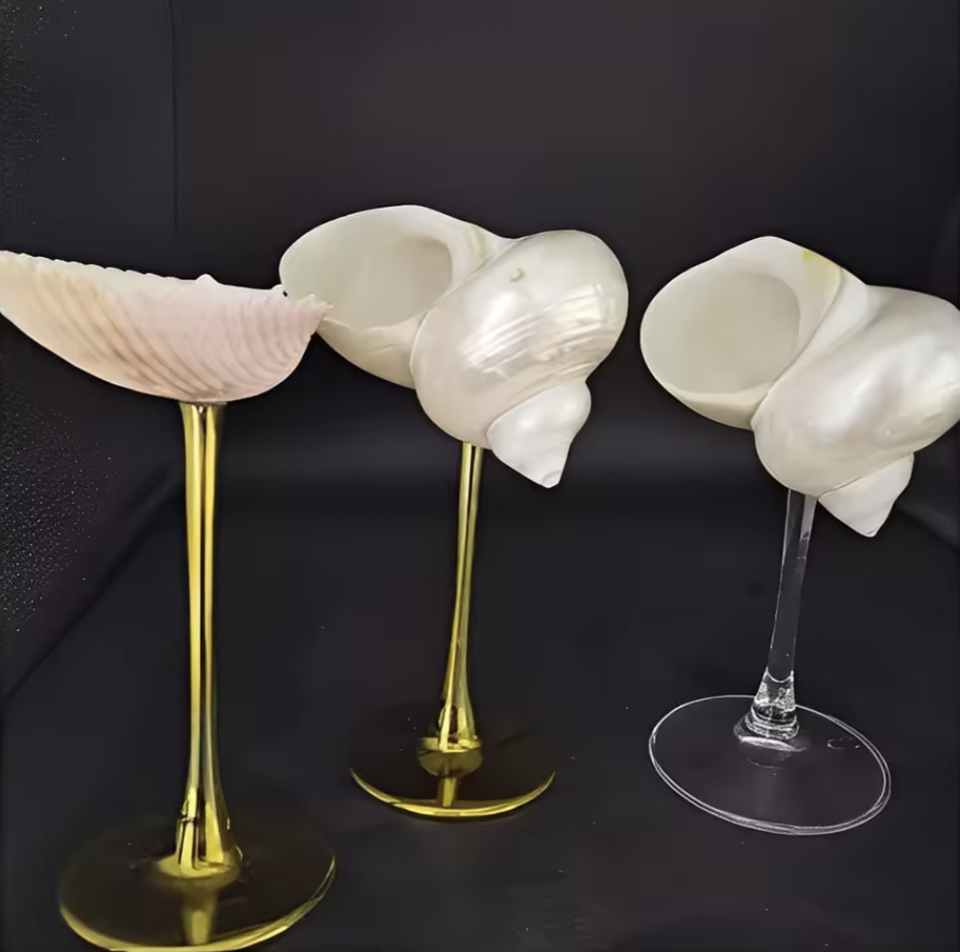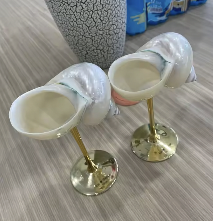 แก้วไวน์เปลือกหอยเวียดนาม แก้วน้ำเปลือกหอยธรรมชาติสำหรับไวน์ ค็อกเทล ของตกแต่งโต๊ะสไตล์ชายฝั่ง