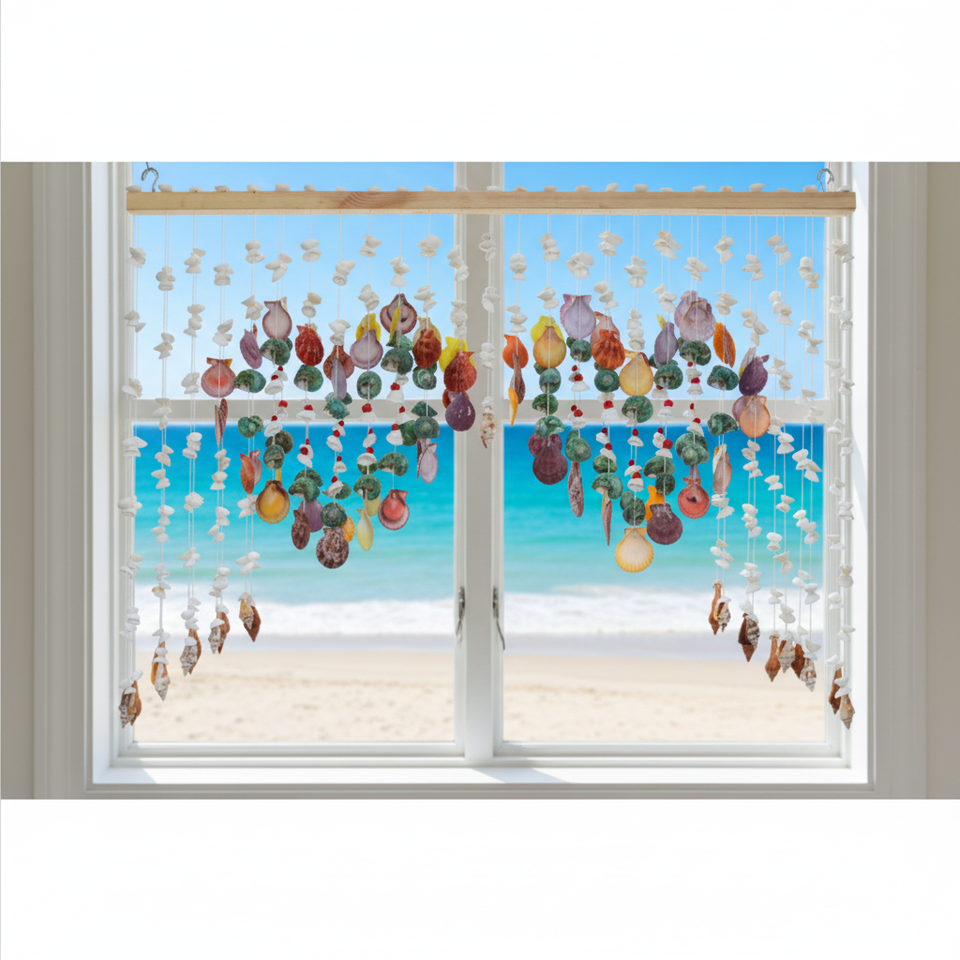 ม่านประดับเปลือกหอยธรรมชาติ งานแฮนด์เมดรักษ์โลก ดีไซน์นางฟ้าและรักษา สำหรับตกแต่งห้องนั่งเล่น