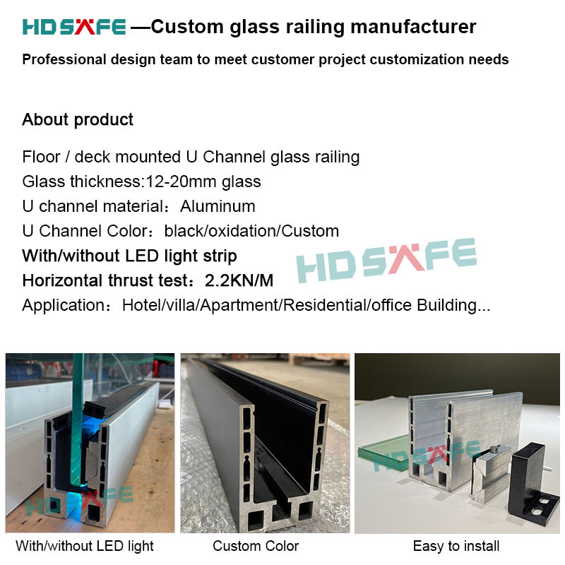 ไร้กรอบ, ราวบันไดกระจก, U Channel railing, balcony railingประเภท