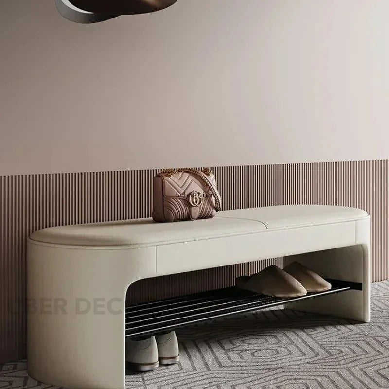 Sebastian French Inspired Contemporary Shoe Organizer Bench Light Luxury Entryway Seating with Rounded Silhouette