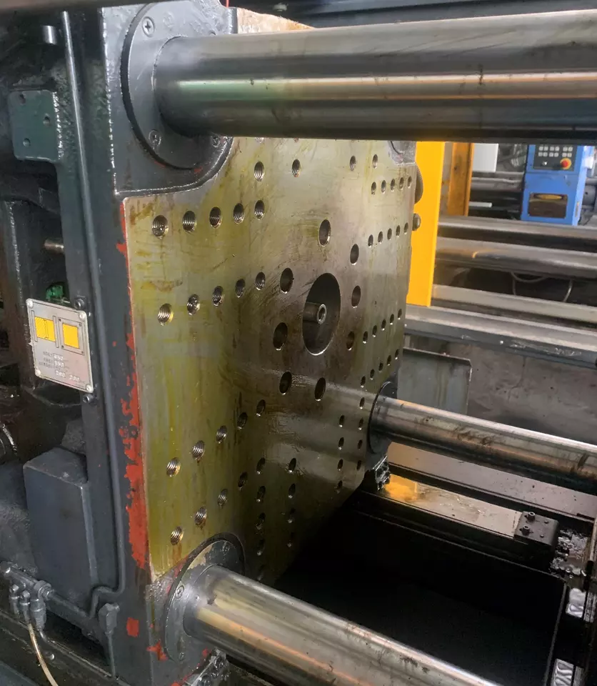เครื่องฉีดพลาสติกไฮดรอลิกแนวนอน PLC มือสองจากเฮติ 90 ตัน พร้อมมอเตอร์ ปั๊ม เกียร์บ็อกซ์ และลูกปืน