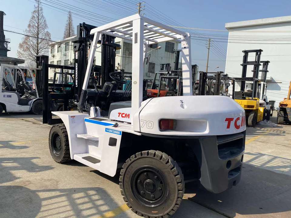 รถยกมือสอง TCM 7 ตัน ระบบไฮดรอลิกดีเซล เสากระโดงเดี่ยว/สอง/สามท่อน ความยาวงา 1200 มม. ผลิตในญี่ปุ่น ขาย
