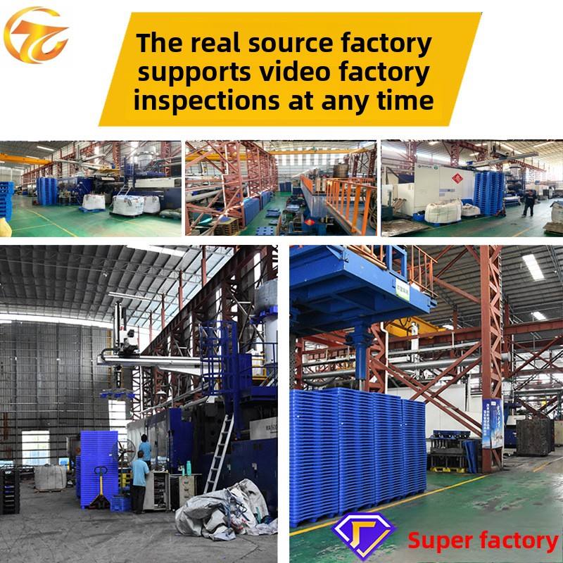 แท่นวางสินค้าพลาสติกสีน้ำเงินสำหรับรถยกสำหรับส่งออกพาเลทพลาสติกอะคริลิกสีดำวัสดุเก่า