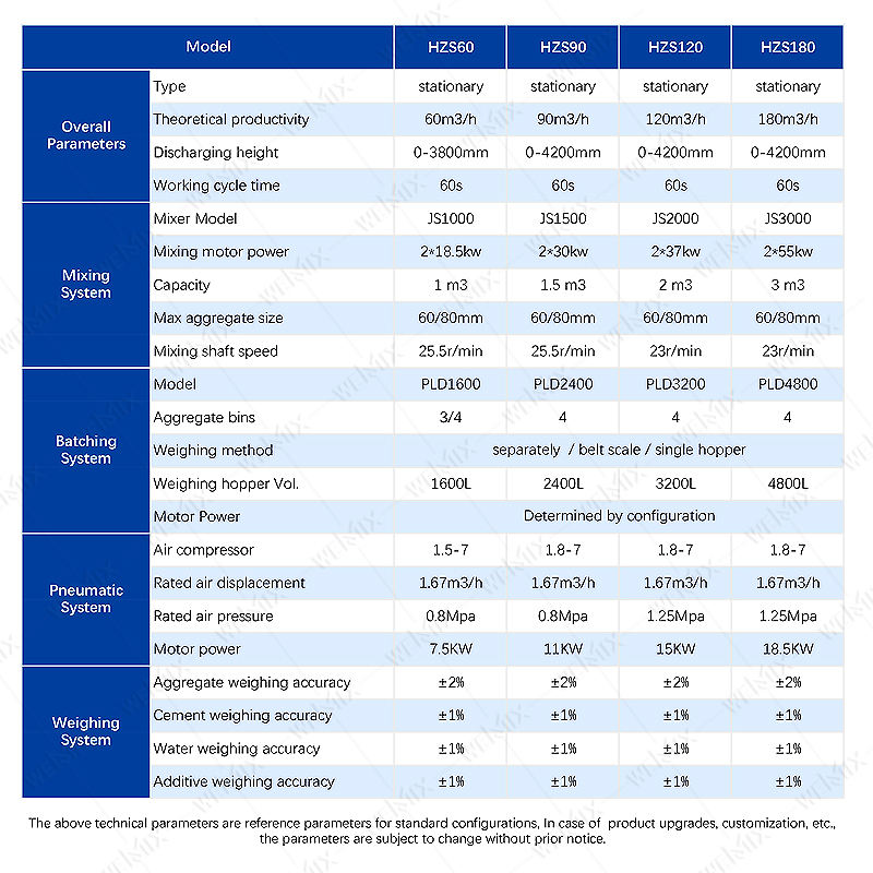 เครื่องผสมคอนกรีต JS1500, เครื่องแบทช์ PLD2400, ระบบควบคุมอัตโนมัติ, สายพานลำเลียง, ซีเมนต์ไซโล