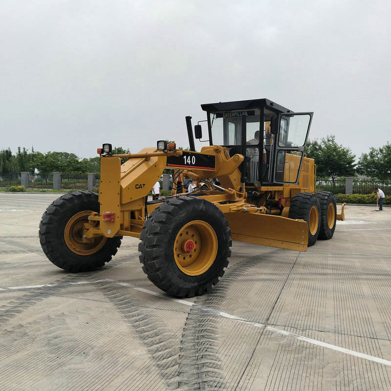 รถเกรดเดอร์มือสอง Caterpillar 140G เครื่องยนต์ 112 กิโลวัตต์ ชั่วโมงการทำงานต่ำ ดูแลรักษาอย่างดี น้ำหนัก 16.7 ตัน ปั๊มไฮดรอลิกและเกียร์บ็อกซ์นำเข้าจากสหรัฐอเมริกา