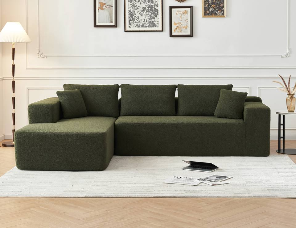 โซฟาแบบแยกส่วน ผ้าเชอร์ปา รูปตัวแอล โซฟาเข้ามุม 3 ที่นั่ง หุ้มเบาะทันสมัย พร้อมหมอนอิง 2 ใบ สำหรับห้องนั่งเล่น