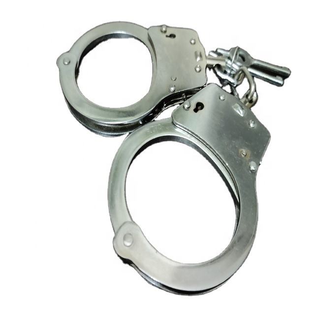 กุญแจมือสแตนเลสมาตรฐาน Nij ของหน่วยรักษาความปลอดภัย แบบโซ่เชื่อมต่อกลาง แบบมีบานพับ ล็อคสองชั้น สีเงิน ผลิตในประเทศจีน
