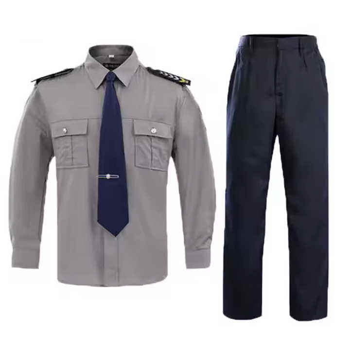 ชุดเครื่องแบบพนักงานรักษาความปลอดภัยชุดสองชิ้นสำหรับผู้ชายชุดทำงานผ้าสวมใส่สบายทนทานแบบกำหนดเอง