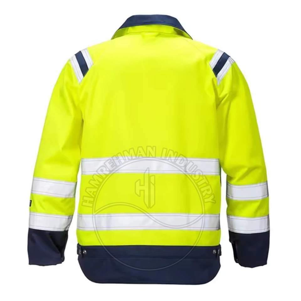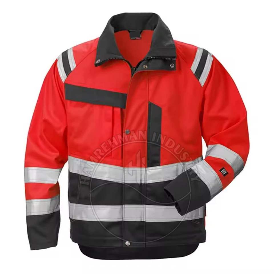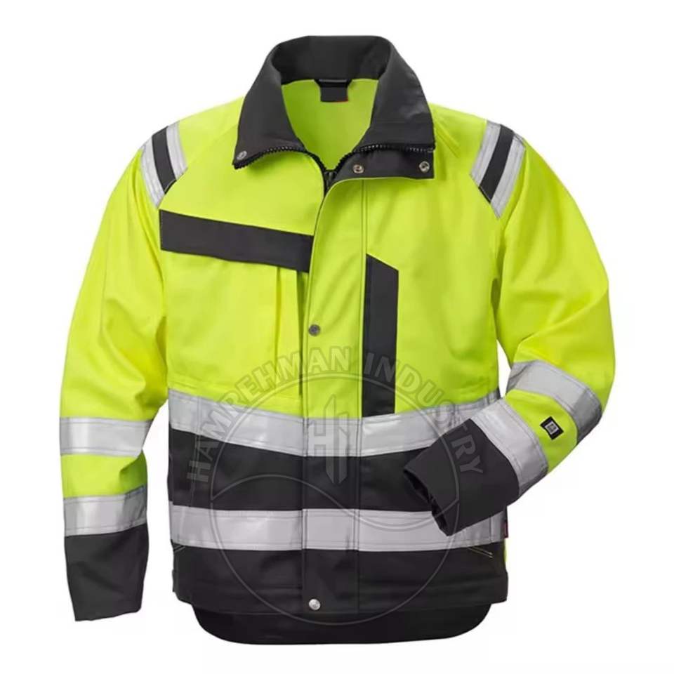 เสื้อแจ็คเก็ตนิรภัยสำหรับงานก่อสร้าง ชุดยูนิฟอร์มก่อสร้างคุณภาพสูง เสื้อผ้าสะท้อนแสง มองเห็นได้ชัดเจนสำหรับผู้ชาย ปรับแต่งโลโก้ได้