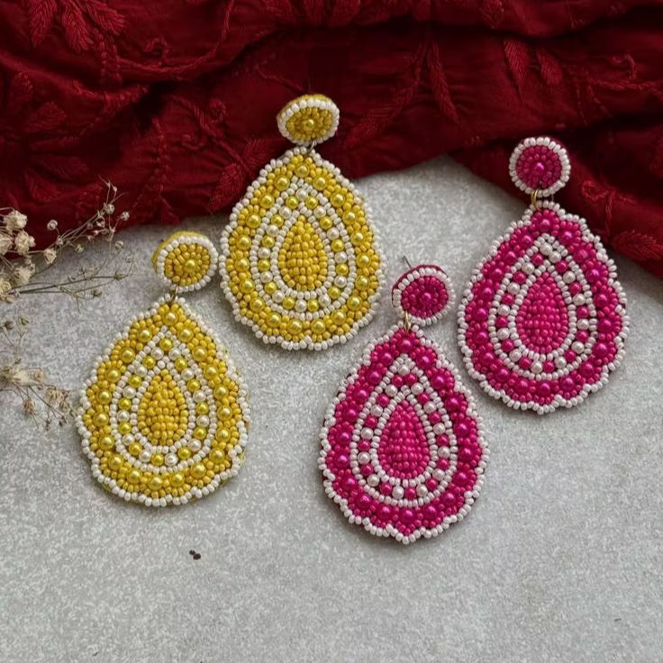ต่างหูเม็ดลูกปัดทรงหยดน้ำ สไตล์โบโฮ ปักลายลูกแพร์ ต่างหูแบบติดหู เครื่องประดับสำหรับผู้หญิง งานปาร์ตี้ฤดูร้อน โดย MD HANDICRAFTS