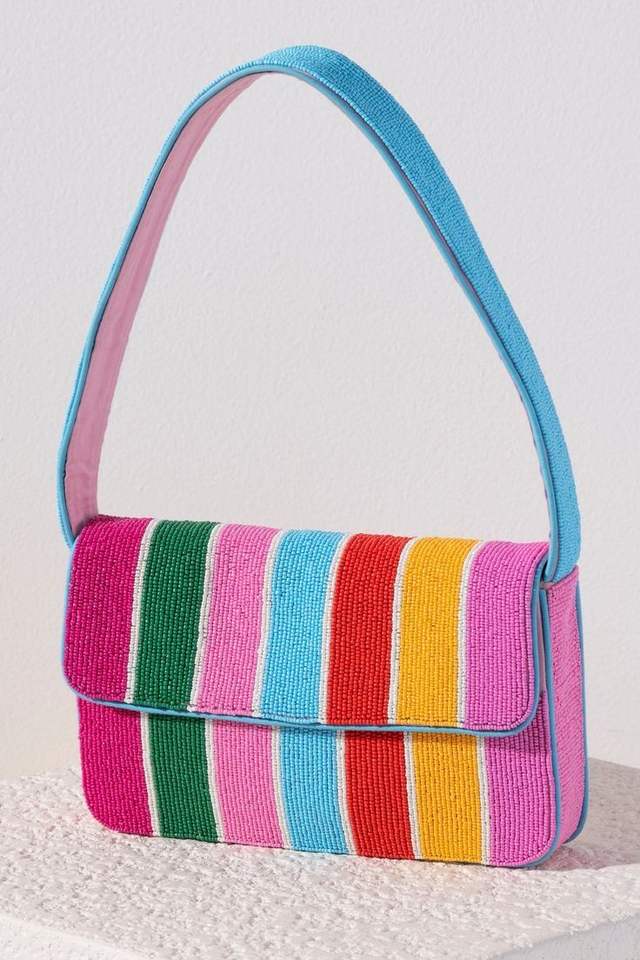 กระเป๋าถือปักลูกปัดพร้อมลายดอกไม้ประดับและกระเป๋าซิป กระเป๋าถือปักลูกปัด