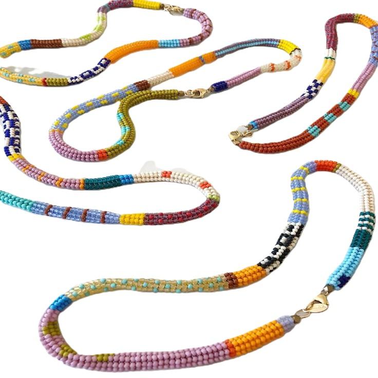 สร้อยคอลูกปัดพร้อมห่วงโซ่ร้อยลูกปัดทำด้วยมือปรับได้พร้อมสไตล์ชนเผ่า