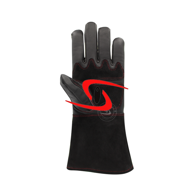 Material:Cowhide GRAIN leather palm & cowhide SPLIT leather back & cuff
