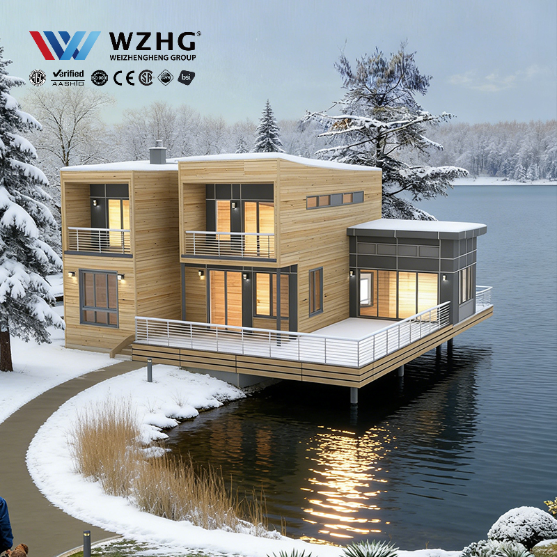 บ้านวิลล่าเหล็กเบาแบบโมดูลาร์ทันสมัย ทนทานต่อแผ่นดินไหว สำหรับใช้เป็นที่อยู่อาศัย สำนักงาน และอพาร์ตเมนต์ มาตรฐาน IBC