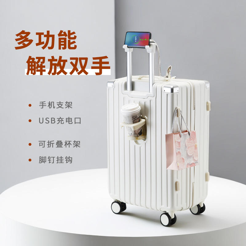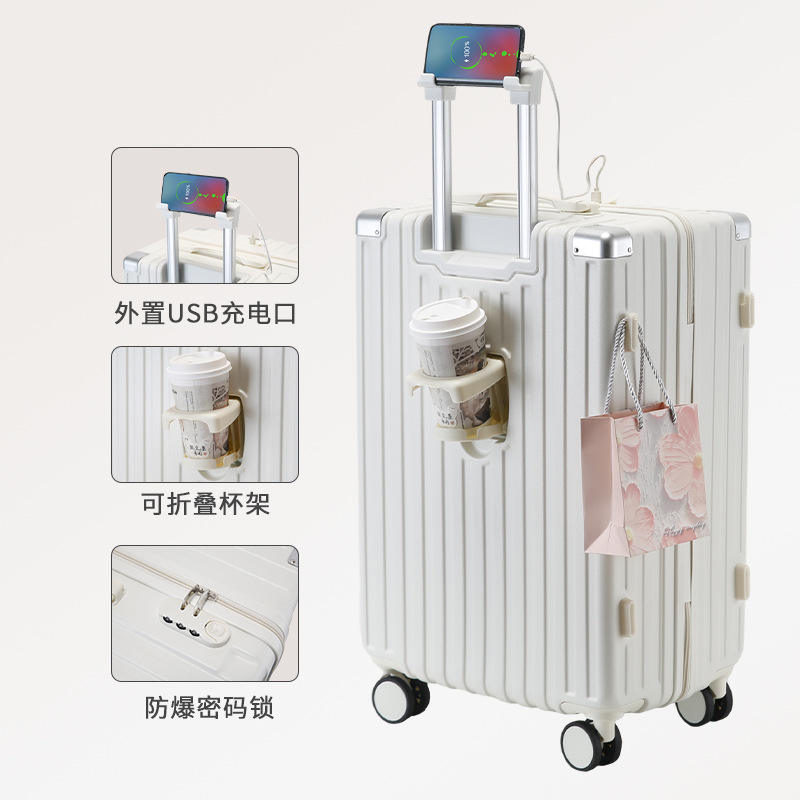 กระเป๋าเดินทางแบบเลือกได้ ขนาด 20 นิ้ว พร้อมที่วางแก้ว ล้อหมุนได้ 360 องศา ปิดด้วยซิป สีพื้น สำหรับทุกเพศ เหมาะสำหรับการเดินทางท่องเที่ยว